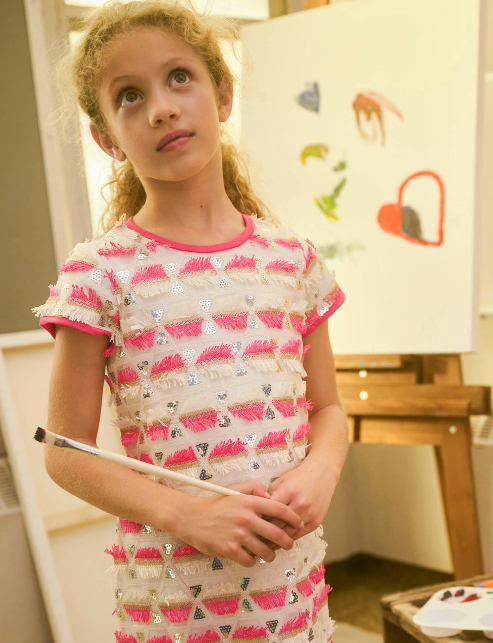 Did someone say party time? Your little one will love this super cute geometric cap-sleeve dress! Featuring stylish sequin detailing and a flattering crewneck finish, this polyester dress will make a fashion statement wherever she goes.