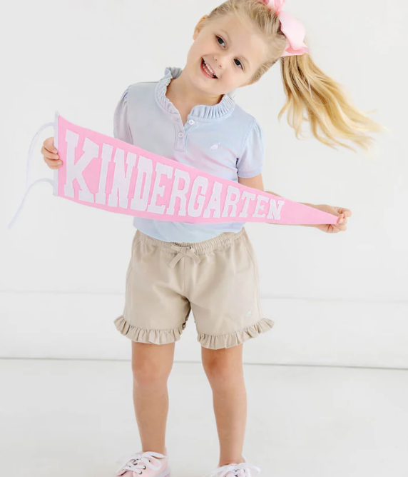 Our Shelby Anne Shorts in Keeneland Khaki with Keeneland Khaki Stork are sure to be your little girl's new favorite shorts. You'll fall in love with the ruffle details!
