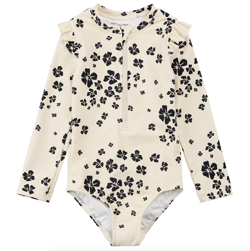 Navy Daisy Rashguard Swimsuit Set