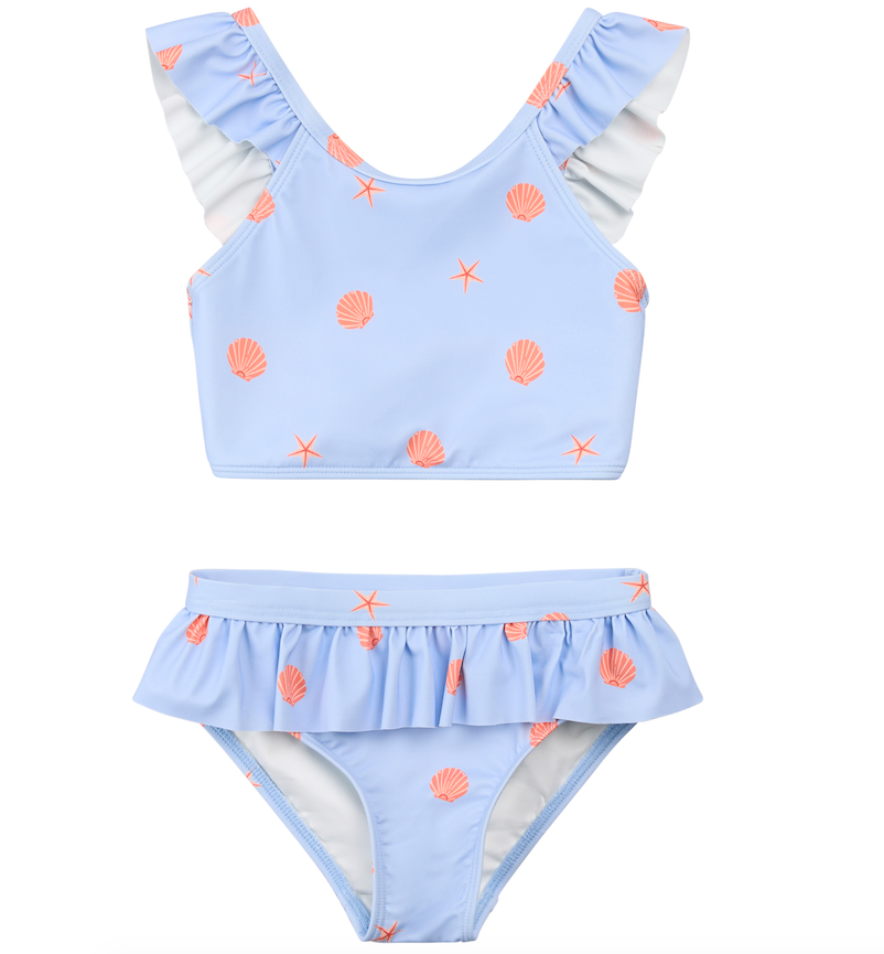 Lt Blue Seashell Ruffle Two Piece Swimsuit