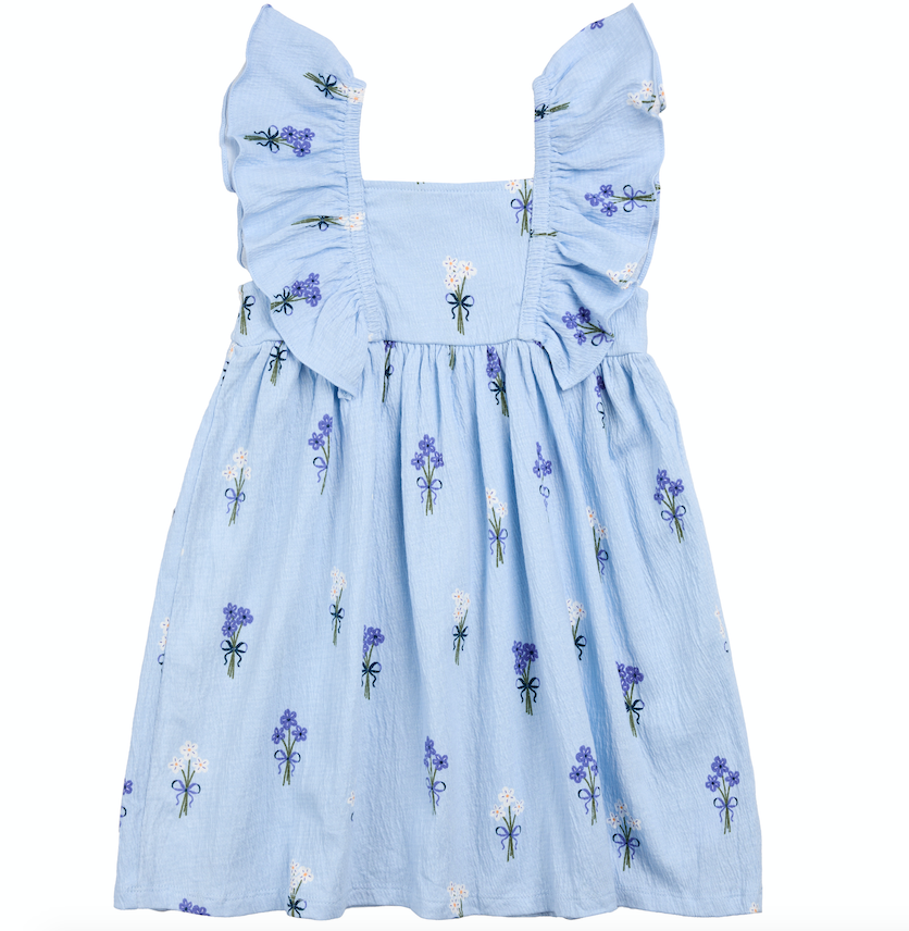 Lt Blue Bouquet Sleeveless Ruffle Dress