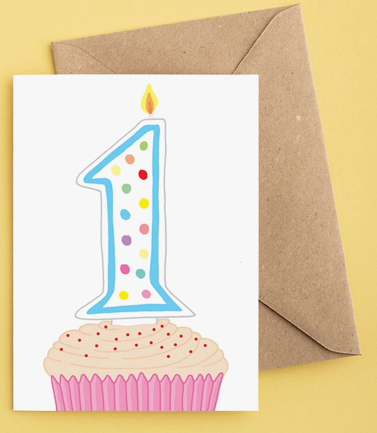 From our kids birthday milestones collection. A brightly coloured cupcake with a number 1 candle on top to celebrate a very first birthday.