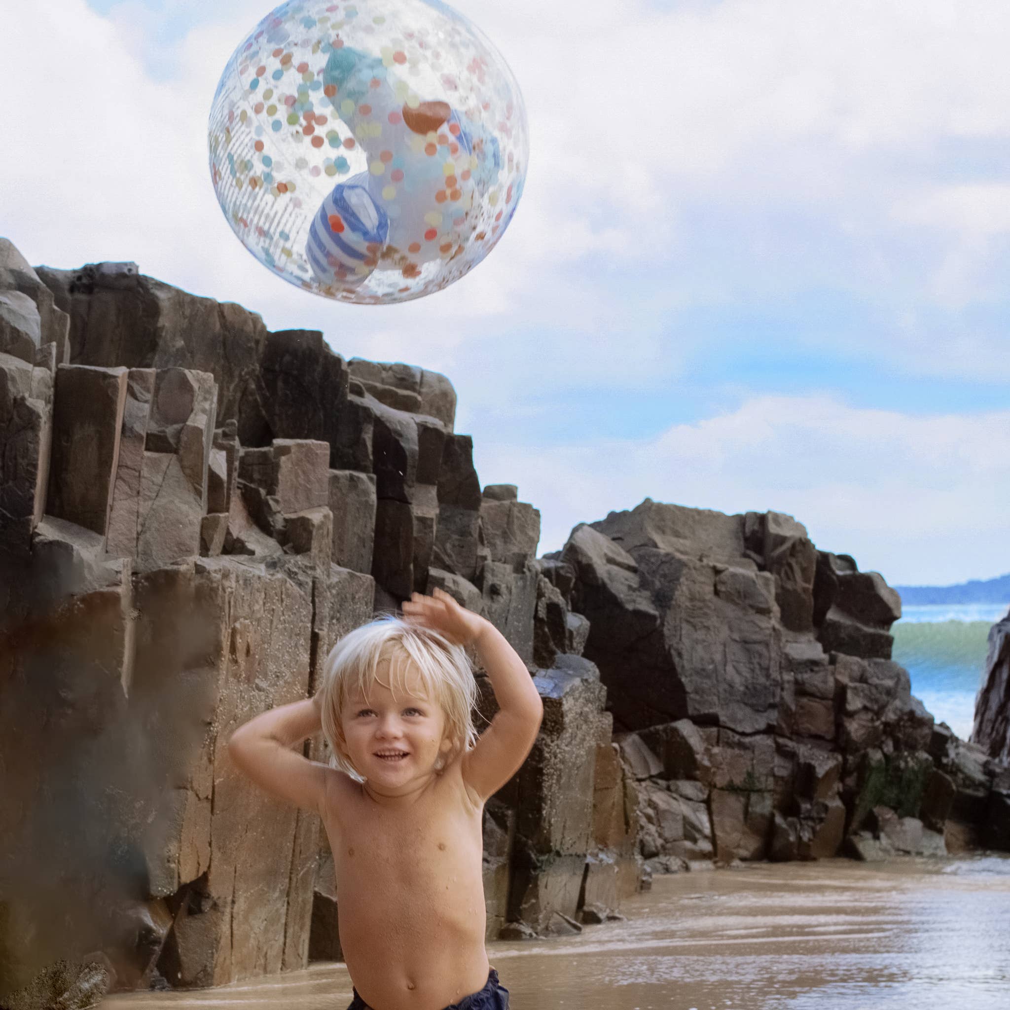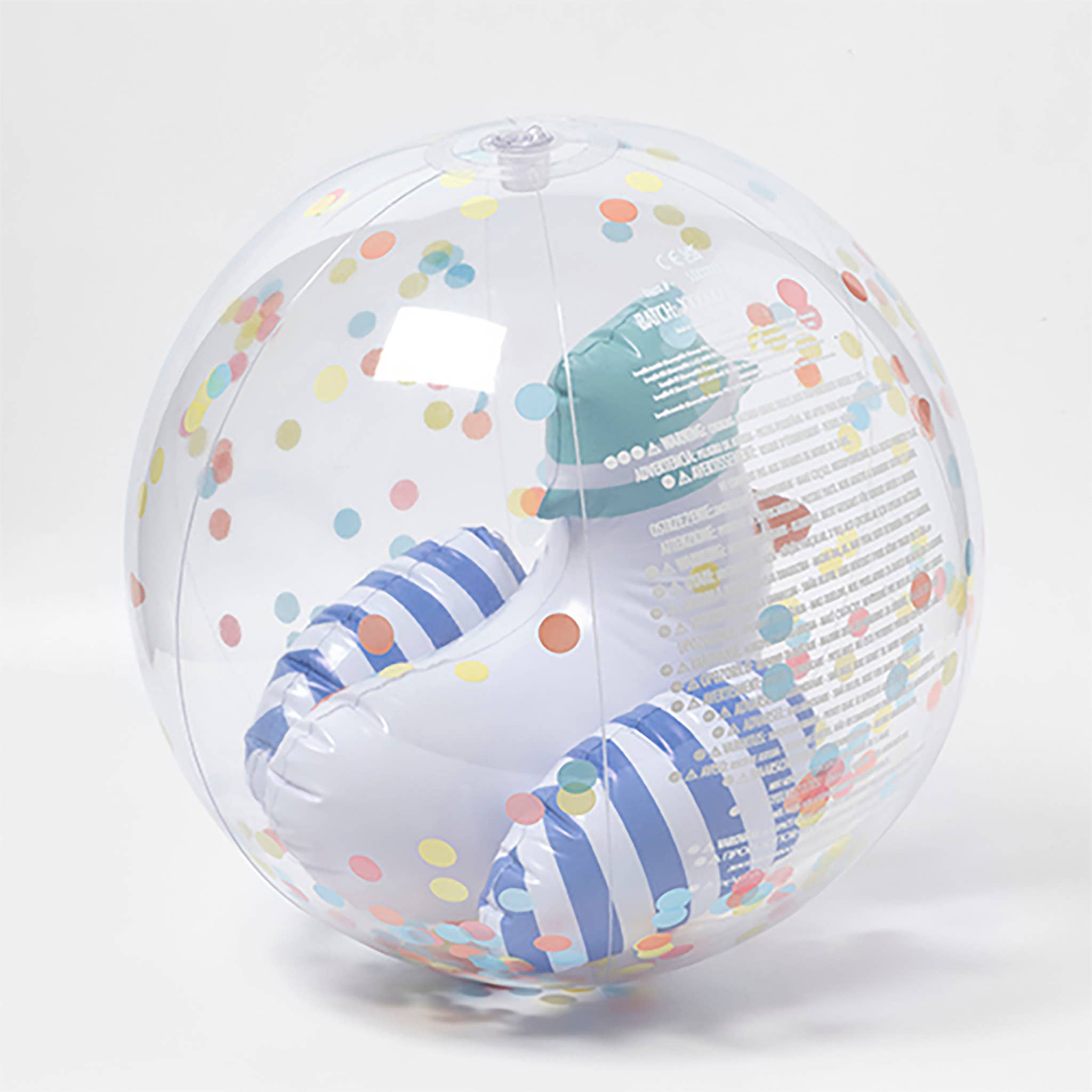 Features 3D character inside of the inflatable ball. Internal confetti. Includes repair patch in case of punctures. Made from durable, non-toxic phthalate-free PVC. Our floats and inflatables carry important safety labels that may not be shown in all photography. This is not a lifesaving device, use under constant competent supervision.