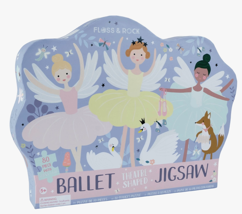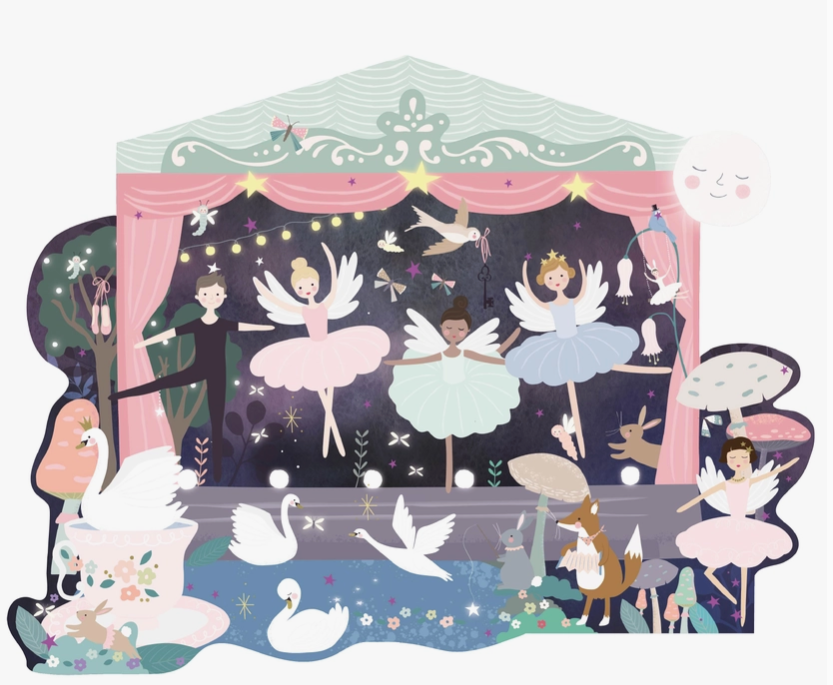 Our gorgeous Ballet Dancers feature on the front of the shaped box alongside their Enchanted Forest Friends. Inside there are 80 puzzle pieces which make up a beautiful scene set in a Magical Theatre. Both the puzzle and the box feature shiny foiled detail. Suitable for 5+.