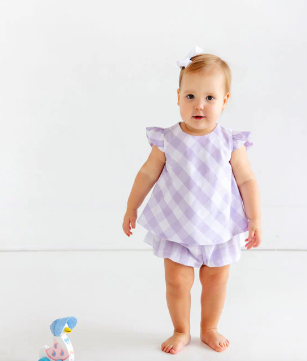 Your little darling will look as sweet as can be in our Alice Angel Sleeve Set! Featuring Lauderdale Lavender Chattanooga Check & a ruffle bottom, this adorable set is one you'll love seeing her in over + over again.