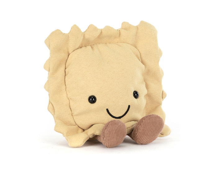 Bursting with giggles and soft in the middle, it's Amuseable Ravioli! This cordy-boot cutie has warm golden fur, a fine stitchy frill and a welcoming smile. Pop this pal up on the kitchen shelf to watch your pasta pots!