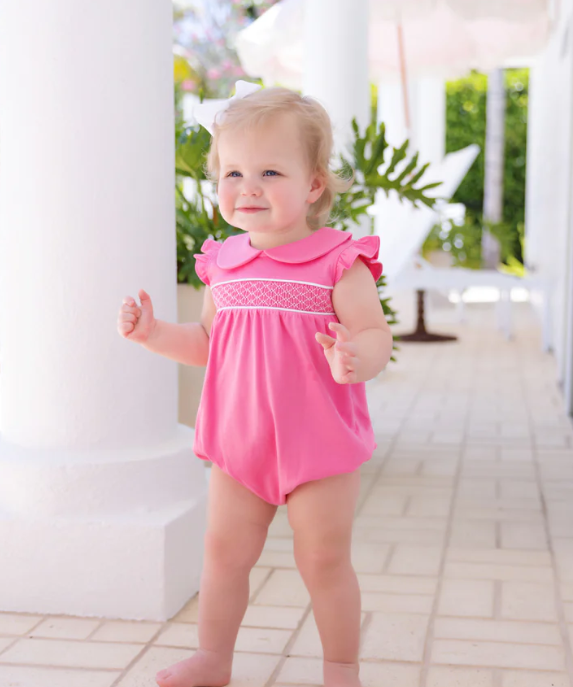 She's sure to be precious in our Angel Sleeve Banbury Bubble! Featuring Winter Park Pink with Worth Avenue White, this little outfit will be adorable for spring + summer fun!