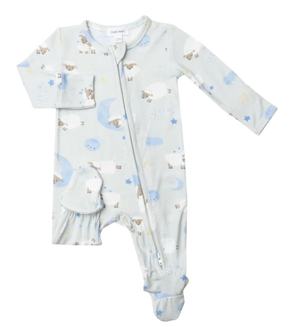 Bamboo Zipper Footie | Baby Sheep Blue – Babycakes Children's Boutique