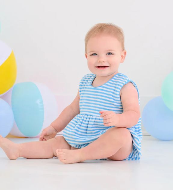Barlett Bubble Terrycloth | Brookline Blue Stripe – Babycakes Children's Boutique