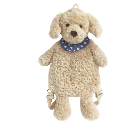 MON AMI friends turned into plush backpacks! With adjustable straps and zipper storage compartment, these plush backpacks are not only cuddly and cute, they are functional. Perfect for storing the ever-important blankie, small soft toys, and little treasures.