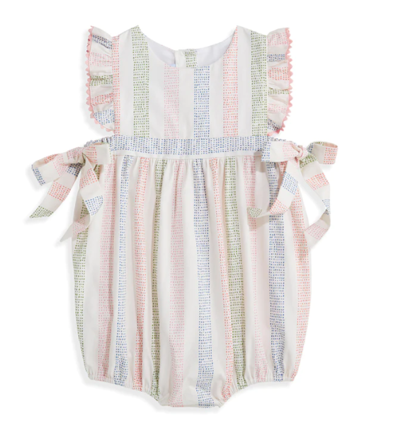 Our most popular bubble for girls is set apart by flutter sleeves and tied up with sweet bows. Lined bodice; snap closure at leg. 100% cotton; machine wash. Sizes 3-24m. *bella bliss® uses the finest cottons available. For best results, lay flat to dry then fluff on low heat.