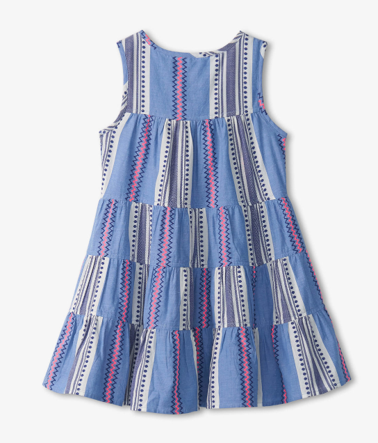 They're guaranteed to be the life of the party in this one-of-a-kind Girls Boho Stripe Tiered Dress! Perfect for a day at the park or school, this cotton dress features a charming A-line fit, a button closure on the back, and three tiers of fun.