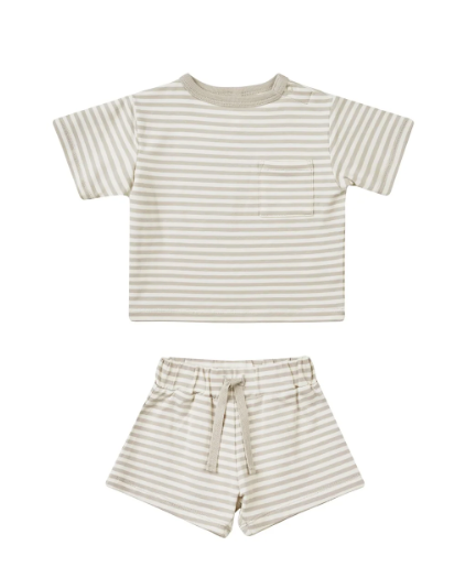 Boxy Pocket Tee + Short Set | Ash Stripe – Babycakes Children's Boutique