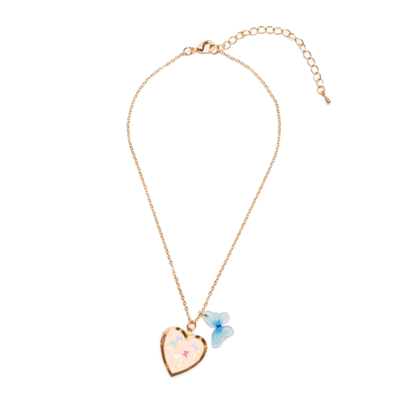We have a new Butterfly Heart Locket to add your to jewelry collection! The heart-shaped locket serves as a precious vessel to hold cherished memories and keepsakes close to your heart. Its smooth surface showcases an array of butterflies dancing in the wind. This locket is complete with a blue butterfly charm.