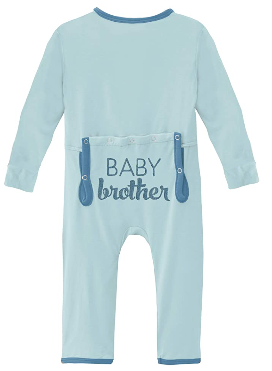 Baby Brother Applique Coverall with Zipper | Spring Sky – Babycakes Children's Boutique