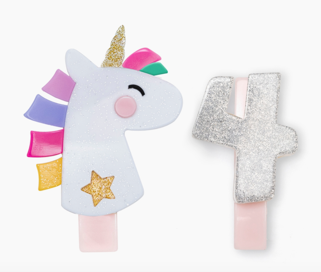 Unicorn Party Alligator Clip | Number 4 – Babycakes Children's Boutique