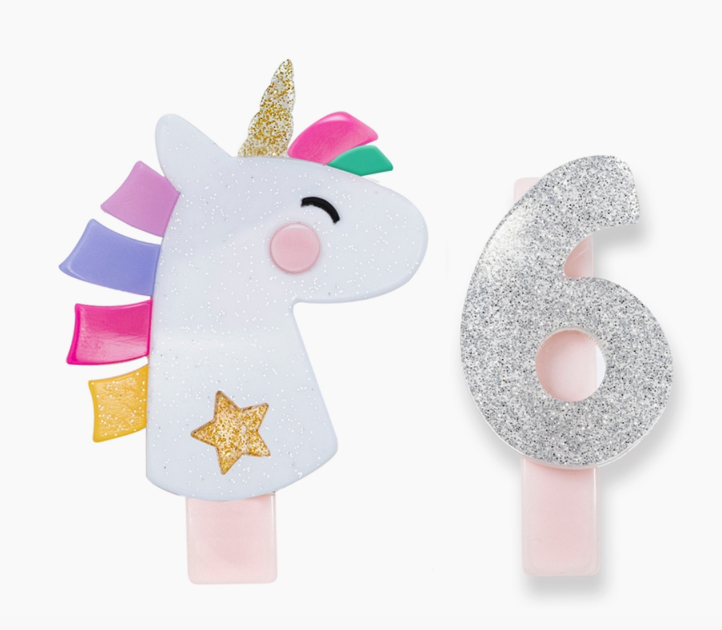 Unicorn Party Alligator Clip | Number 6 – Babycakes Children's Boutique