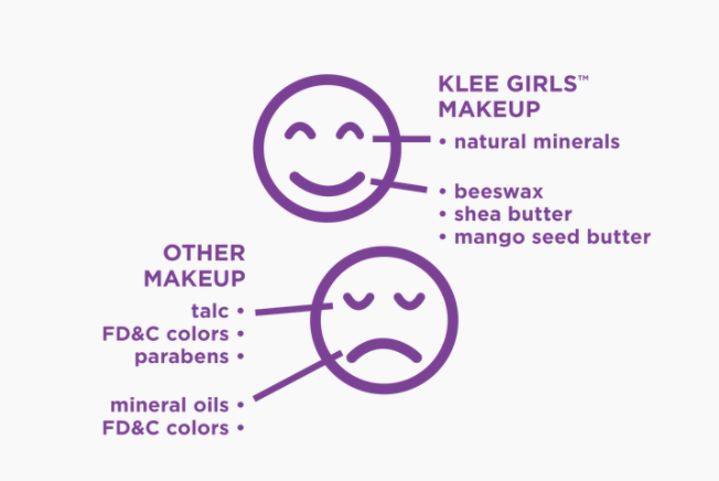 Don't let harsh chemicals ruin delicate young skin. Klee Girls makeup is formulated with NO talc, NO parabens, NO synthetic dyes and NO petrochemical binders. No animal testing and gluten-free. Made in USA.