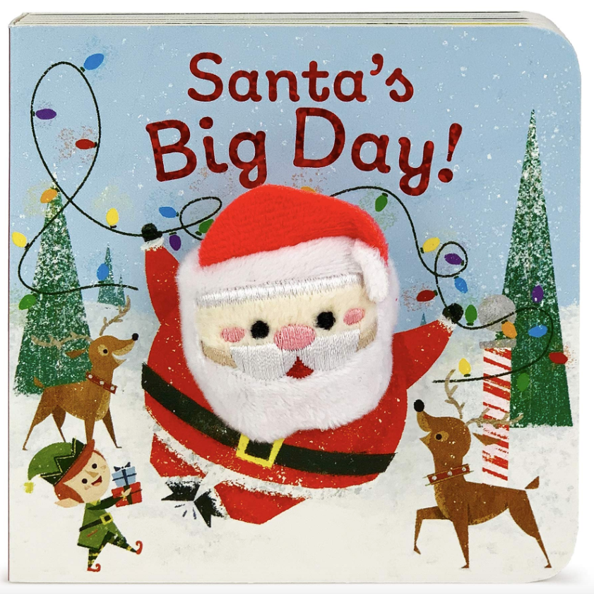 Ho, ho, ho! Join Santa as he prepares for his big day! It’s Christmas eve in the North Pole, and Santa’s elves are busy making toys to deliver to good little girls and boys. The sled is all packed, and Santa and his reindeer are ready to go! Celebrate the holidays with this delightfully jolly rhyming story featuring a soft, plush finger puppet toy built into the book encouraging interactive play, hand-eye coordination, sensory and language development. Babies and toddlers learn best when they are playing, especially when their grown-ups are in on the fun!