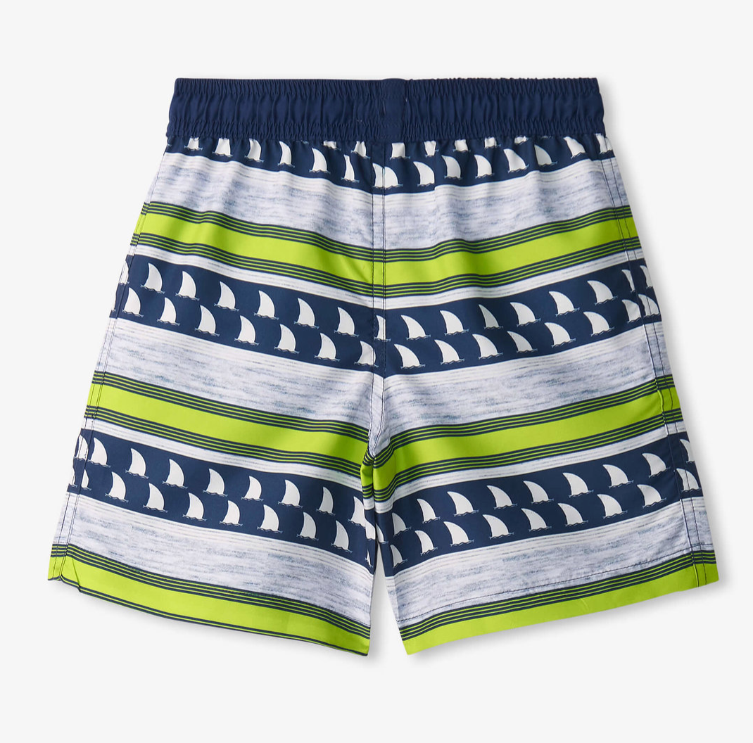 Navigate the waters with style in our Boys Fins and Stripes Swim Trunks. The polyester trunks are sleek for your little swimmer, ensuring they can play in the water all day. Easy to pair with any of our rashguards.