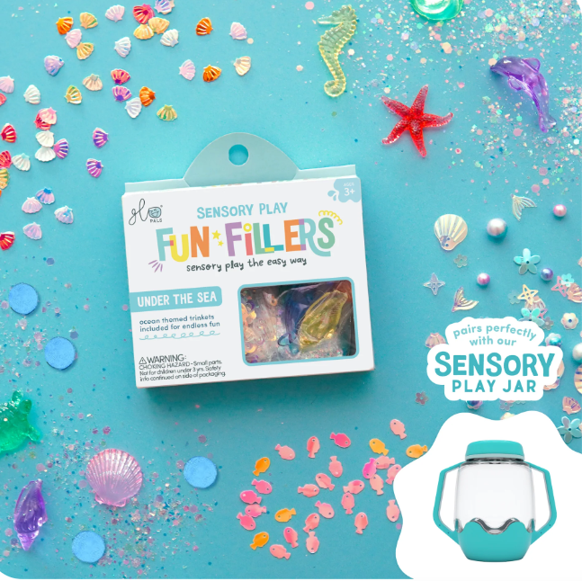 Fun Fillers take the fuss out of curating the perfect sensory play activity! Each pack includes themed sensory accessories that take playtime to the next level! These pair perfectly with our new Sensory Play Jar - or you can use them to enhance your favorite sensory bin. Perfect for water, rice, slime, play-dough and more, Pals!