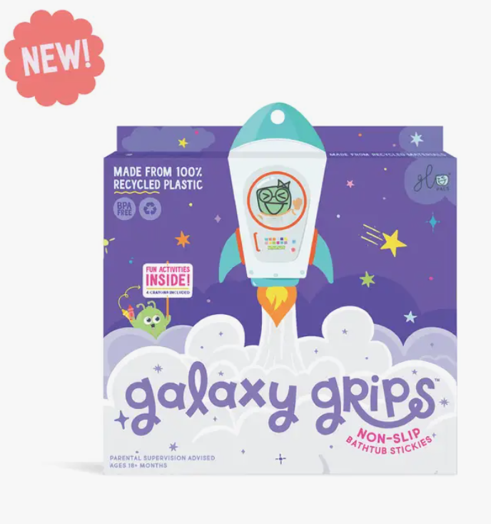 3..2..1.. BLAST OFF at bath time with Galaxy Grips - non-slip bathtub stickies designed with your little one in mind. The textured, non-slip surface is fun and functional, meaning more bath time fun and fewer slips + slides. Soar through our solar system with free, fun activities and learning resources inside our Galaxy Grip playable packaging! Includes 8 non-slip, bathtub stickies. Hand packaged and shipped with love from Starkville, MS.