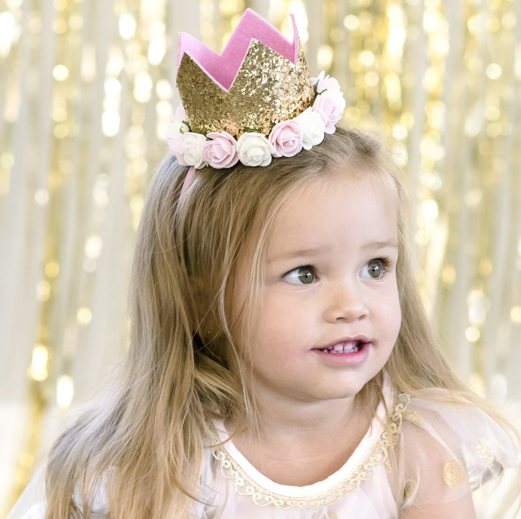 The Gold Blush Flower Crown is the perfect addition to any birthday party or everyday dress up! Since this crown does not have a number on it, it can be worn for multiple occasions. Makes a great birthday present for any little girl in your life!