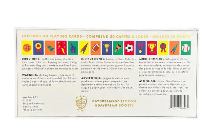 A classic memory-matching card game—sports edition! These cards are perfect for little hands. Have fun while encouraging memory, matching, and turn-taking skills. Whoever collects the most pairs wins!
