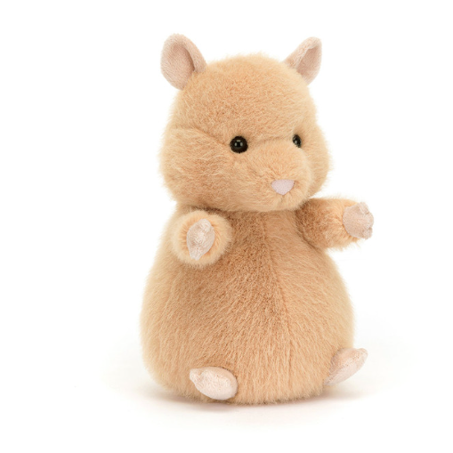 Hank Hamster is Gordy Guinea Pig's pal, and just as divinely podgy. This fuzzy hamster has apricot fur and gently folded peach ears. With soft stitch claws, an embroidered nose, chubby cheeks and curious eyes, Hank is a treasure for your desk or pocket.