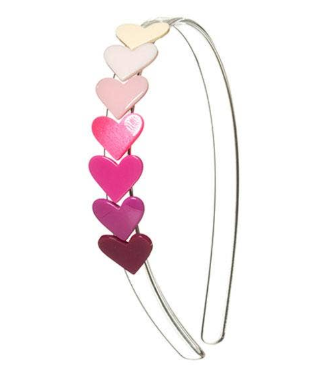 Show love in style with these colorful hearts. Our Centipede heart headband features seven coordinated hearts in fun colors. Stylish for Valentine's Day or any day! Available in glitter and solid colors. 100% acrylic.