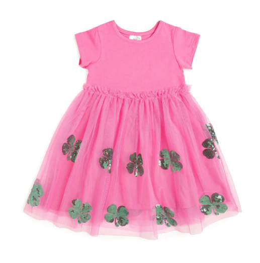 The Pink Shamrock St. Patrick's Day Short Sleeve Tutu Dress is the perfect twirl-worthy dress for celebrating St. Patrick's Day!