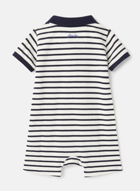 Pique Polo Romper | Navy Stripe (Blue) – Babycakes Children's Boutique