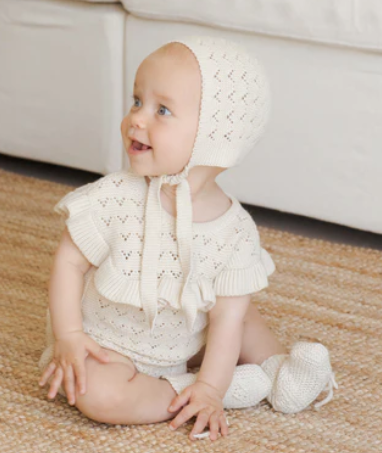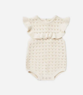 Pointelle Ruffle Romper | Natural – Babycakes Children's Boutique