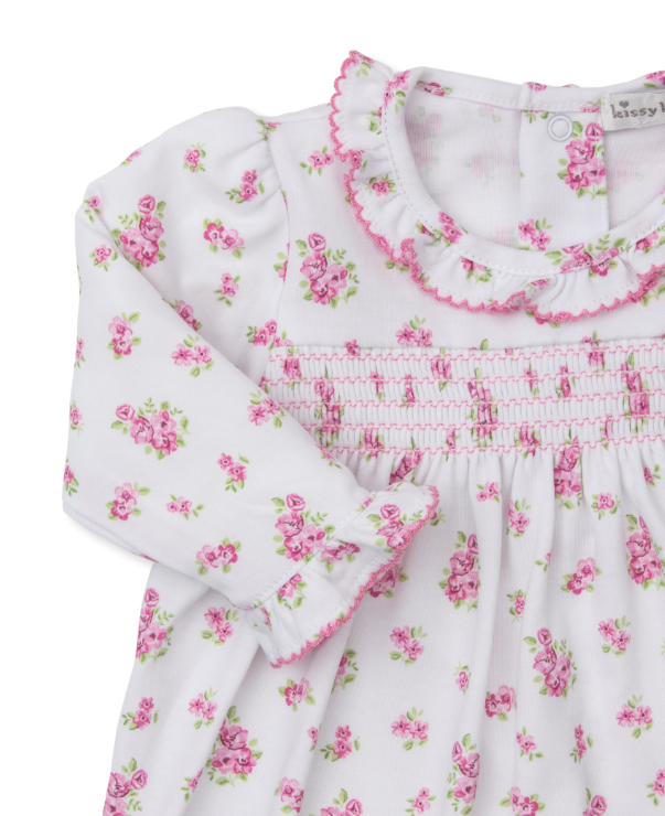 Pink Roses and Bloom Playsuit w/Smocking – Babycakes Children's Boutique