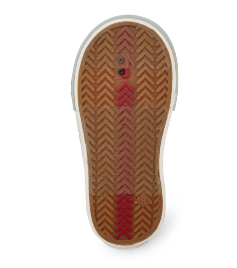 • Rubber outsole with herringbone lug pattern provides great traction for play.  Rubber toe cap adds protection