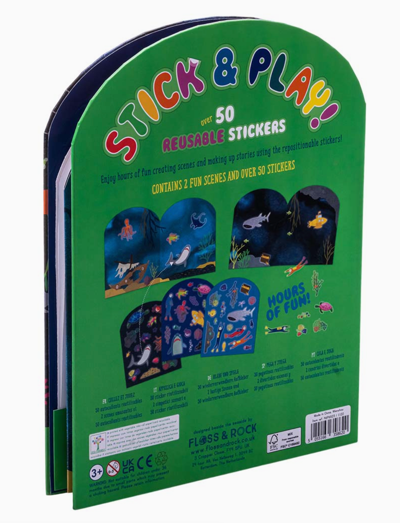 Our Stick & Play book is so much fun and educational at the same time too! With over 50 fun shaped reusable stickers, there are 2 fold out scenes to create and make up stories using the repositionable stickers. At the back there is a separate section where you match the stickers to their shapes. This will entertain little ones for hours! The hard back book folds completely flat making it perfect for travel and taking out and about. FEATURES Perfect for travel and taking out and about Over 50 reusable stickers 2 fun fold out scenes Educational to match your stickers to the shapes at the back Eco-friendly Recommended age 3+