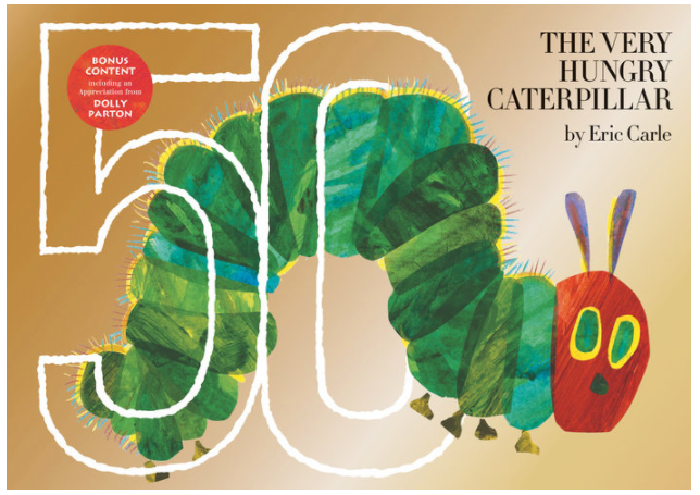 A new, limited golden anniversary edition in honor of 50 wonderful years, including rare bonus content. Happy birthday, Very Hungry Caterpillar!The Very Hungry Caterpillar has been crawling its way into kids’ hearts for 50 years, and what better way to celebrate than by giving him a brand new cocoon! With a beautiful golden anniversary jacket (with an oversized “50” logo), along with a new introduction letter from Eric Carle himself, this anniversary edition will be sure to delight Caterpillar fans of all ages. Bonus content features an appreciation by prominent children’s literacy advocate Dolly Parton, as well as an essay on the history and significance of the Caterpillar, including rare images of the original sketches and historic photos.
