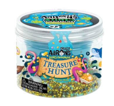 Embark on an adventure with Crazy Aaron’s® Treasure Hunt Slime Charmers™! This smooth, Coconut scented, blue butter slime is packed with gold bingsu beads and hidden treasure charms waiting to be discovered. Dig through the slime, uncover your treasures, and let the hunt for fun begin!