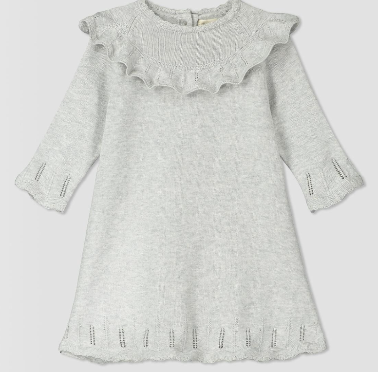 - Detailed scooped collar, the same detailing to the long sleeves and dress hem.