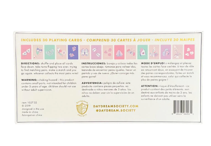A classic memory-matching card game featuring beautiful butterflies! These cards are perfect for little hands. Have fun while encouraging memory, matching, and turn-taking skills. Whoever collects the most pairs wins!