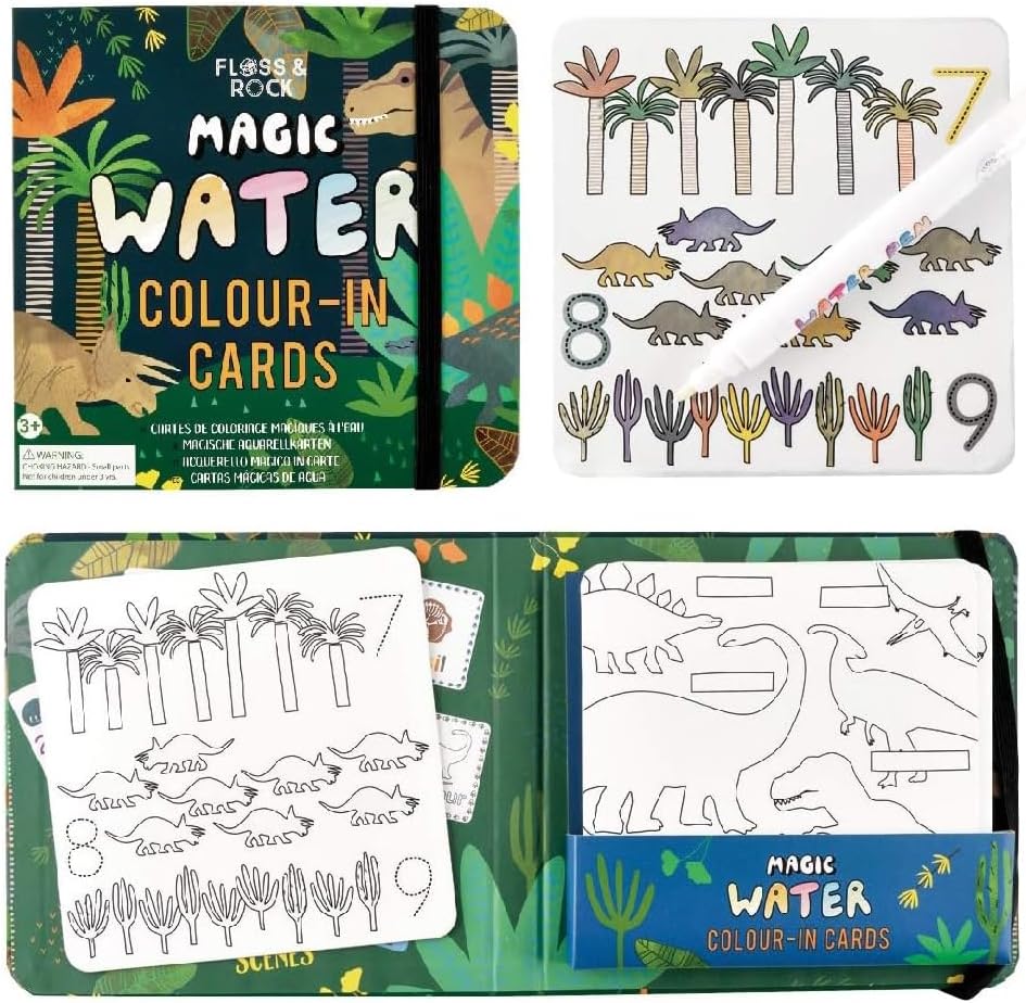 These Magic Water Cards make the most exciting gift and can be used over and over again. Simply fill the pen with water and color in the pictures or follow the outlines to reveal designs, letters and numbers which then slowly disappear. These water cards come in a strong reusable carry case. For ages: 3+ years.
