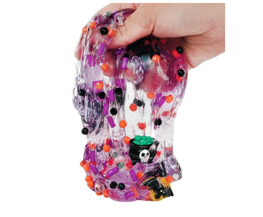 Double double toil and trouble! Cast all the magical spells you want with Crazy Aaron's(r) Slime Charmers(TM) Witches Brew. This purple classic slime comes with Halloween themed charms so that you can craft fun and spooky potions!