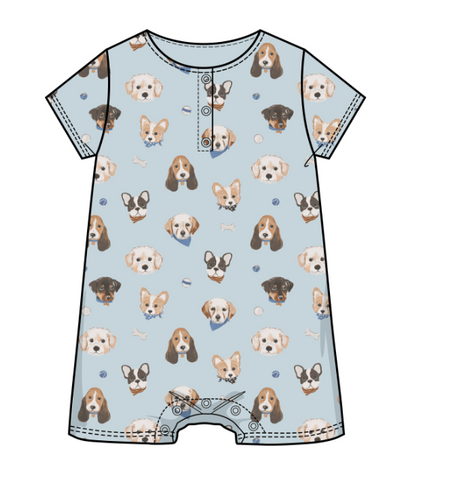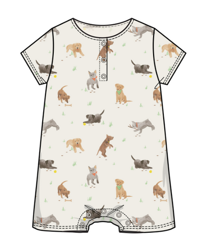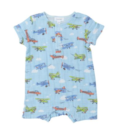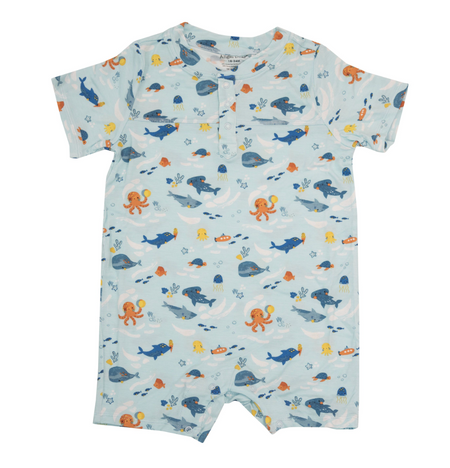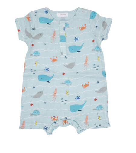 Henley Short Sleeve Striped Romper | Navy/Teal