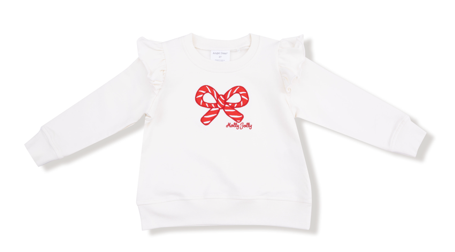 Ruffle Shoulder French Terry Sweatshirt | Candy Canes – Babycakes Children's Boutique