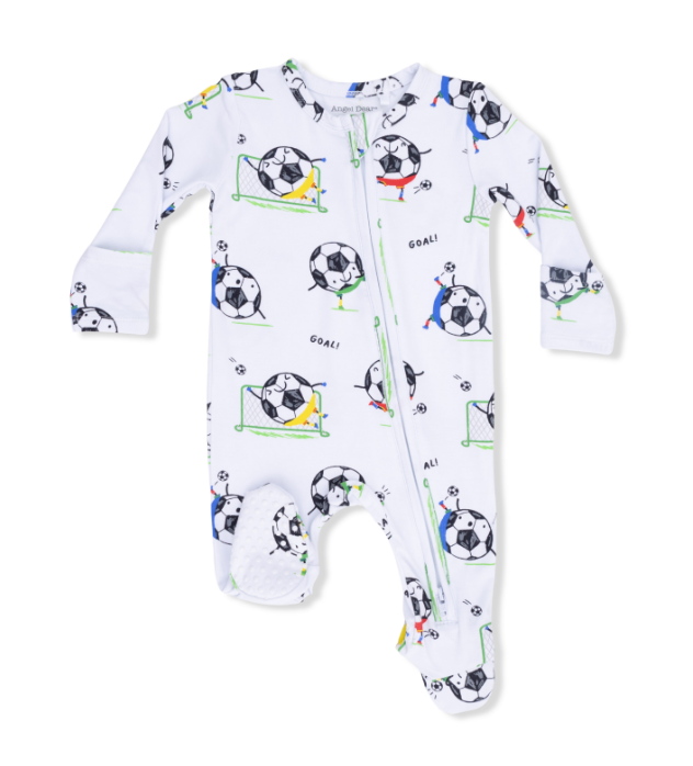 Two Way Zipper Footie | Blue Soccer Balls Playing Soccer