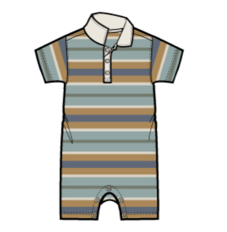 Polo Romper | Mineral Stripe