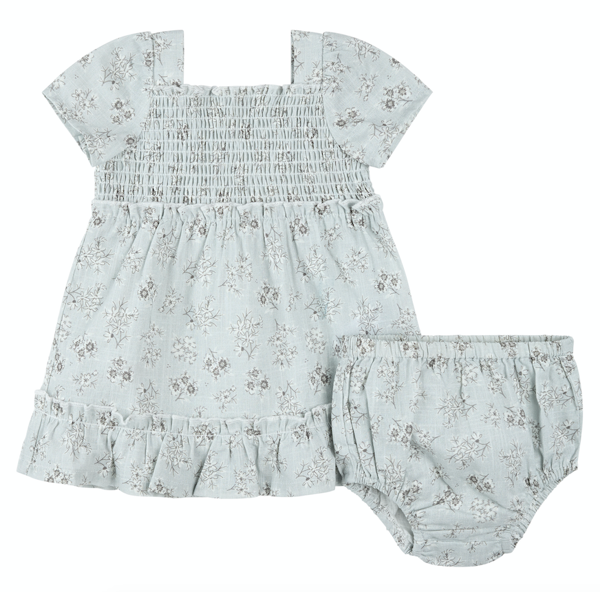 Lt Blue Floral Dress w/Bloomer Set