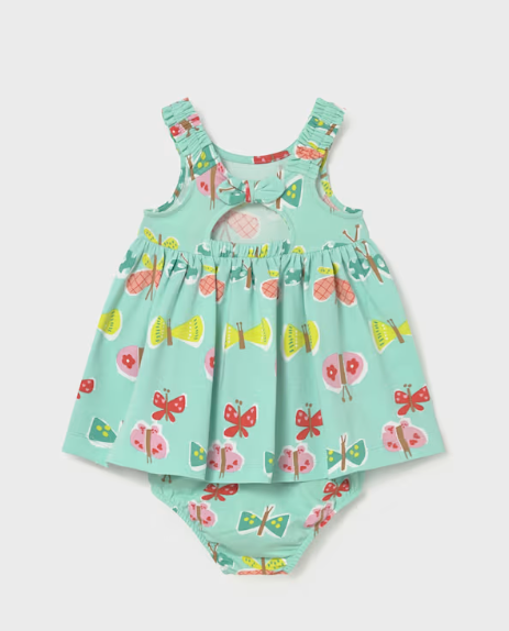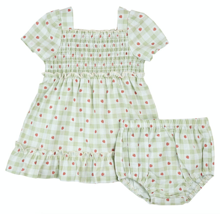 Lt Green Check Strawberry Dress w/Bloomer Set
