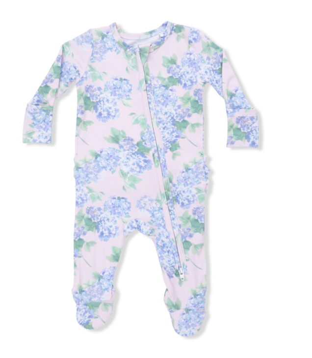 Two Way Zipper Ruffle Footie | Hydrangeas