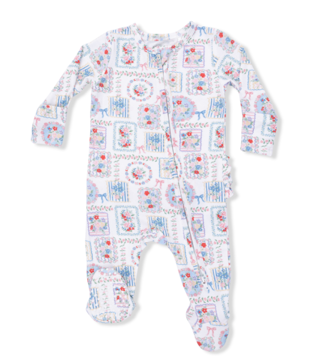 Two Way Zipper Ruffle Footie | Julep's Floral Patchwork